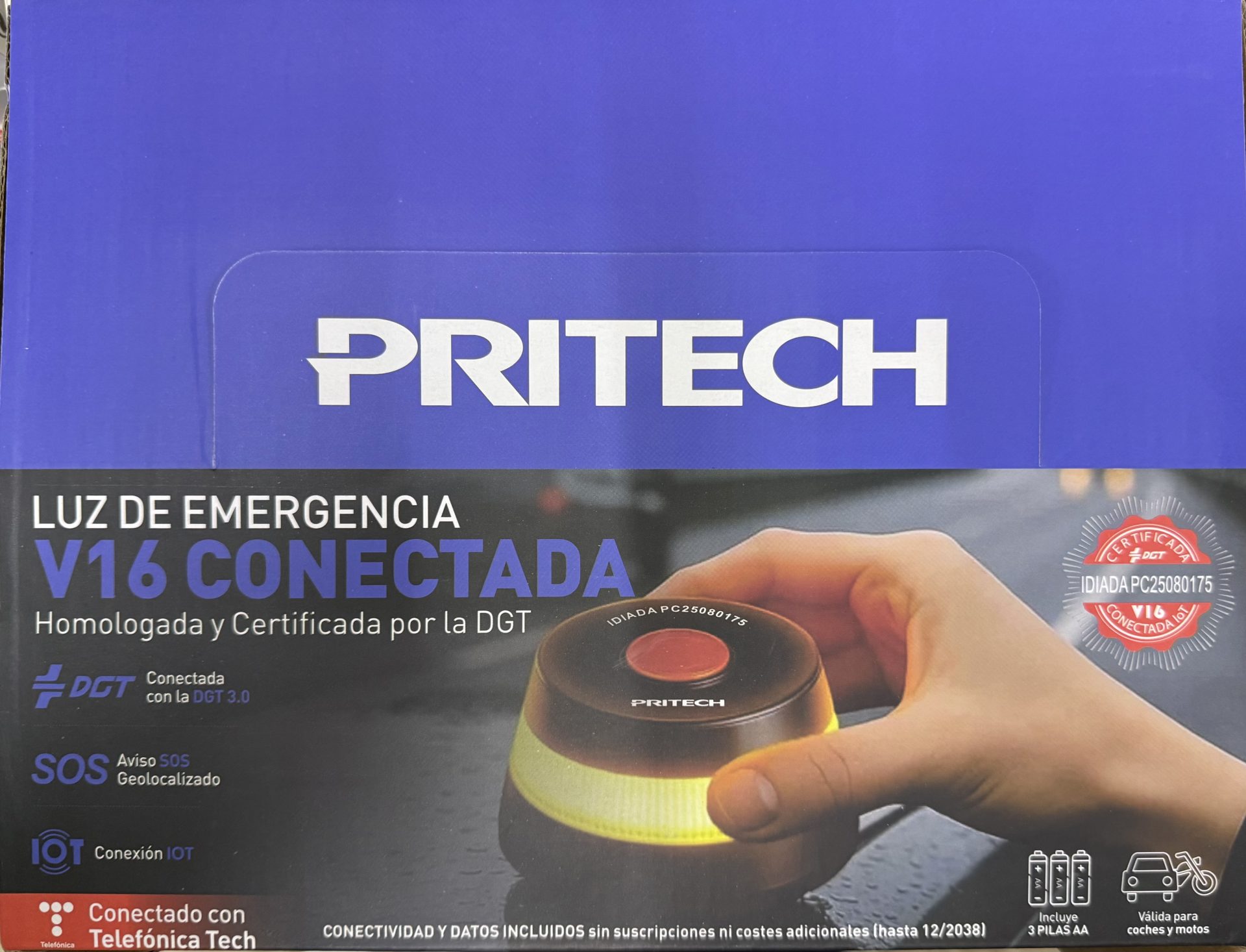 PRITECH Luz Emergencia V16 Homologada DGT con Geolocalización, Baliza Coche Conectada DGT 3.0, Datos Incluidos hasta 12/2038